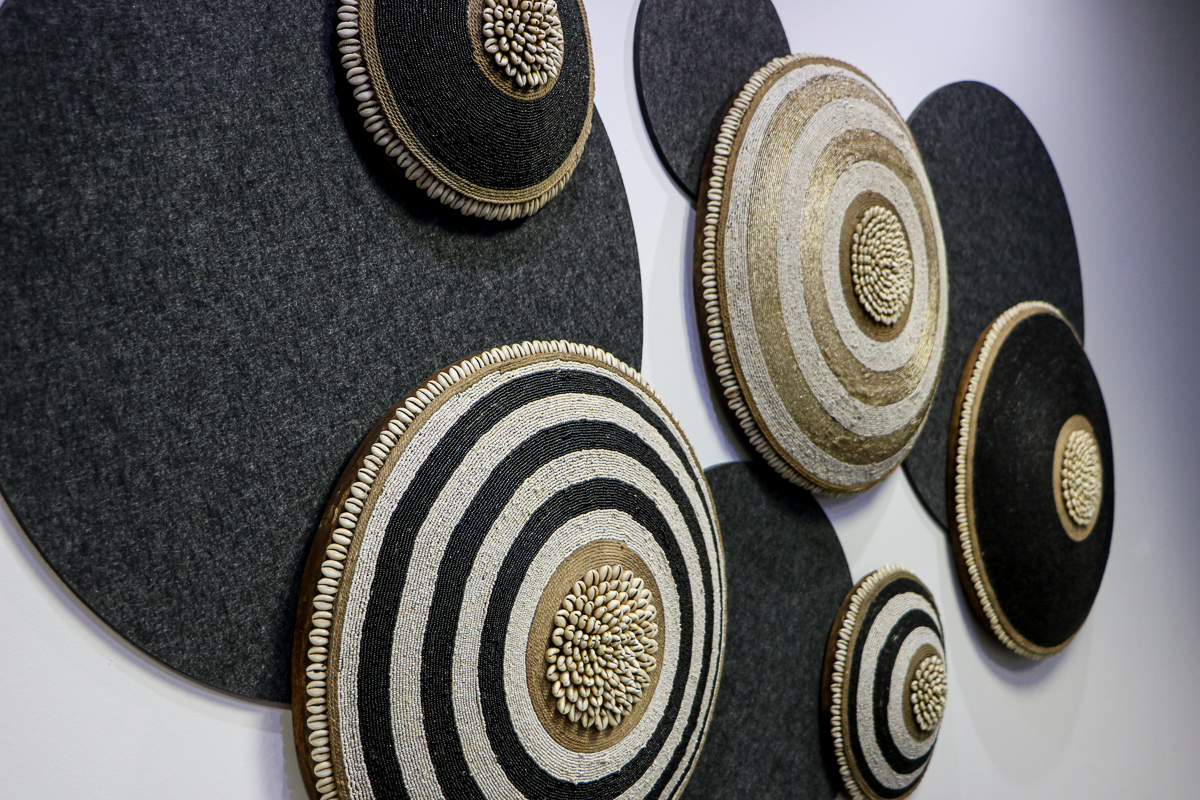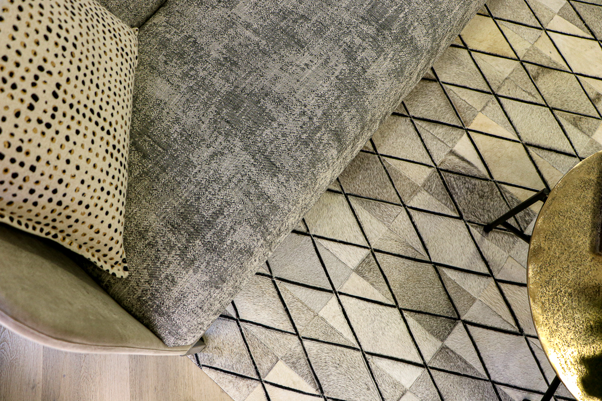 Using textures and layers of whites, greys and cream we created a clean and sophisticated look. The Bold Cara Saven wallpaper and Quilted cow hide rug in the reception, as well as the african sheilds in the meeting room and the subtle use of metals all reference Africa without being Cliche.
