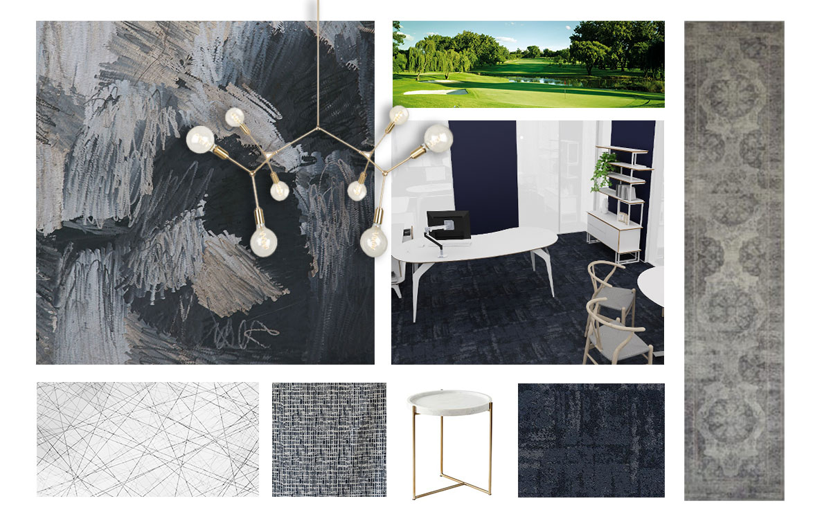 The reception, executive office and boardroom which is used for training incorporates the rich navy and gold of the corporate colours. Fabric, glass, wallpaper, silk laminates on read ply wood furnishings adds lush tactile elements to the space.